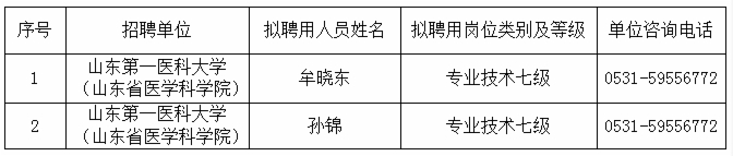 根据《山东省事业单位高层次急需紧缺人才特聘办法》(鲁人社规〔2017〕22号)等相关规定,山东第一医科大学(山东省医学科学院)通过特聘方式聘用高层次急需紧缺人才,现对拟聘用人员进行公示。公示期为7个工作日,自2025年11月20日至2025年11月28日(不含节假日)。公示期间,如对公示人选有异议,请及时向省事业单位公开招聘主管机关反映。